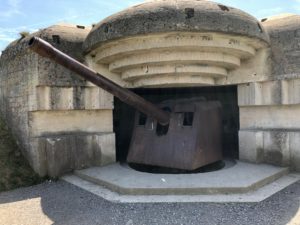 From the American Cemetery, we headed towards Arromanches-les-Bains where we planned to eat. However, we stopped en route for a short visit to the Batterie at Longues-sur-Mer. This is a well preserved Gun Battery – which serves as a grim reminder and testament to the memories of those that set about liberating Europe in June 1944. There were four emplacements (casements) and a command post, but now only three of the casements still house the 150mm guns – which could fire a shell 12 miles out to sea!! These were captured only one day into the D-Day landings!